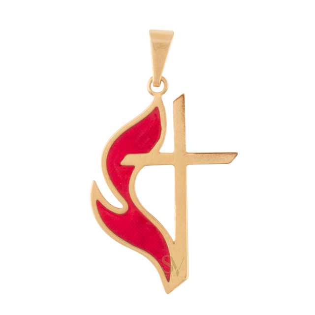 Pingente com chamas,semi joia ouro 18,padrão metodista.